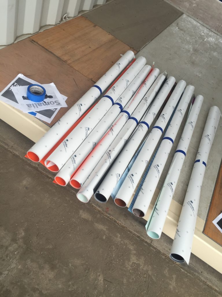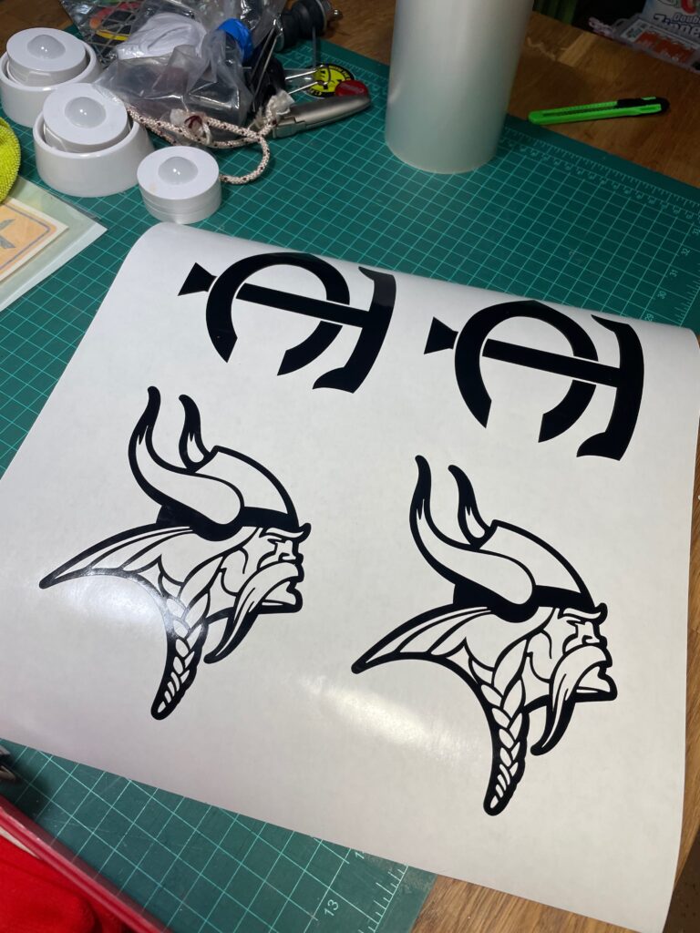 All ready to apply graphics are weeded & taped for customer installation.